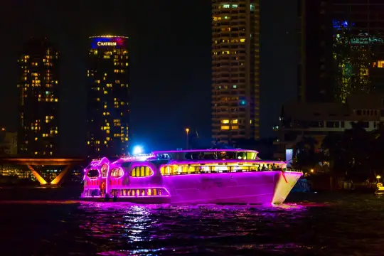 An endless spread of international cuisine awaits, from fragrant Thai curries to delicate sushi, each bite paired with the rhythm of live jazz and traditional dance, as the Wonderful Pearl Cruise sets sail, Bangkok’s skyline becomes a glittering stage. Every moment feels choreographed for wonder: a floating celebration where luxury, culture, and romance meet under the stars.