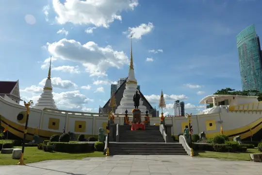 Originally built during the Ayutthaya period, later transformed under King Rama III in the early 19th century, Wat Yannawa, also known as the “Boat Temple,” is a unique Buddhist temple in Bangkok, famous for its Chinese junk-shaped viharn built during King Rama III’s reign. The boat-shaped viharn symbolizes Thailand’s maritime heritage and King Rama III’s wish to preserve the memory of Chinese junks, which were disappearing from use. It remains an active place of worship for locals, blending historical architecture with modern Bangkok’s skyline.