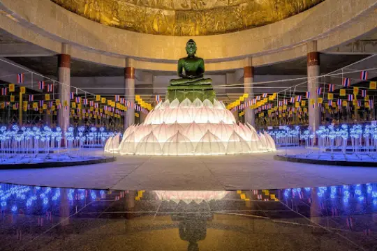 Founded in the early 1960s by Phra Dhamma Mongkol Yarn, a revered monk who had spent over 20 years in forest retreat, Wat Dhammamongkol is a distinctive Buddhist temple in Bangkok’s Phra Khanong district, best known for its towering chedi, meditation gardens, and rare Jade Buddha statue. It offers a peaceful retreat from the city, perfect if you want a quieter, authentic temple experience.