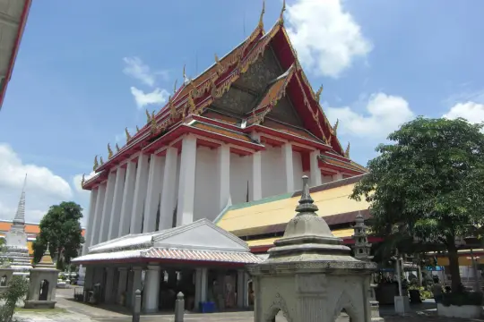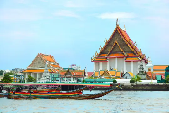 Built in 1825 during King Rama III’s reign, Wat Kanlayanamit Woramahawihan is a royal Buddhist temple on the Thonburi side of the Chao Phraya River in Bangkok, famous for its massive Buddha image (Luangpho To), the largest temple bell in Thailand, and its riverside location near the Kudeejeen community, making it a serene yet culturally rich stop near other historic landmarks.